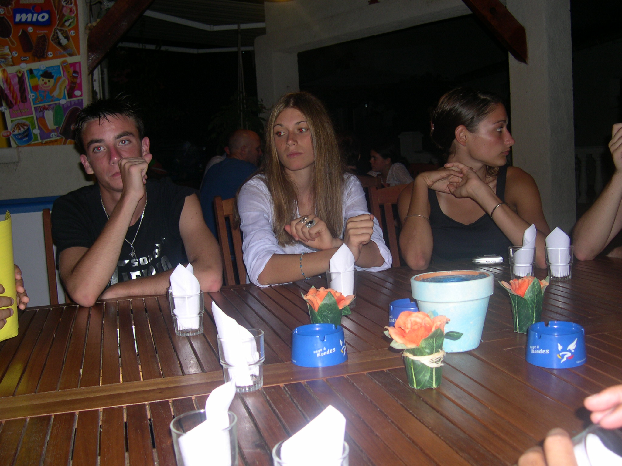 A la pizzeria des Roseaux, Claire, Camille et moi PUTAIN on l'a fait !!!! 4 aout 2005 ! Partis de Campo à pied vers 02h45, on est remonté en un peu moins de deux heures !!! Grâce à un rythme soutenu et ue volonté indescriptible de rejoindre nos lits, nous nous sommes même permis un petit sprint au niveau d'un certain bungalow le long de la route ^^... non c'est pas vrai on avait pas peur du fou qui y habite..Enfin bref, un des meilleurs moments de cet été avec Arthur, J-P, Bibou, Michael et moi. Ici, on nous voit arriver au pont exténués. Dis-donc J-P, mais d'où sort cette lampe =D Aurélien, Louis et Joseph Le maquis flou...magnifique selon Michael...enfin bref ^^